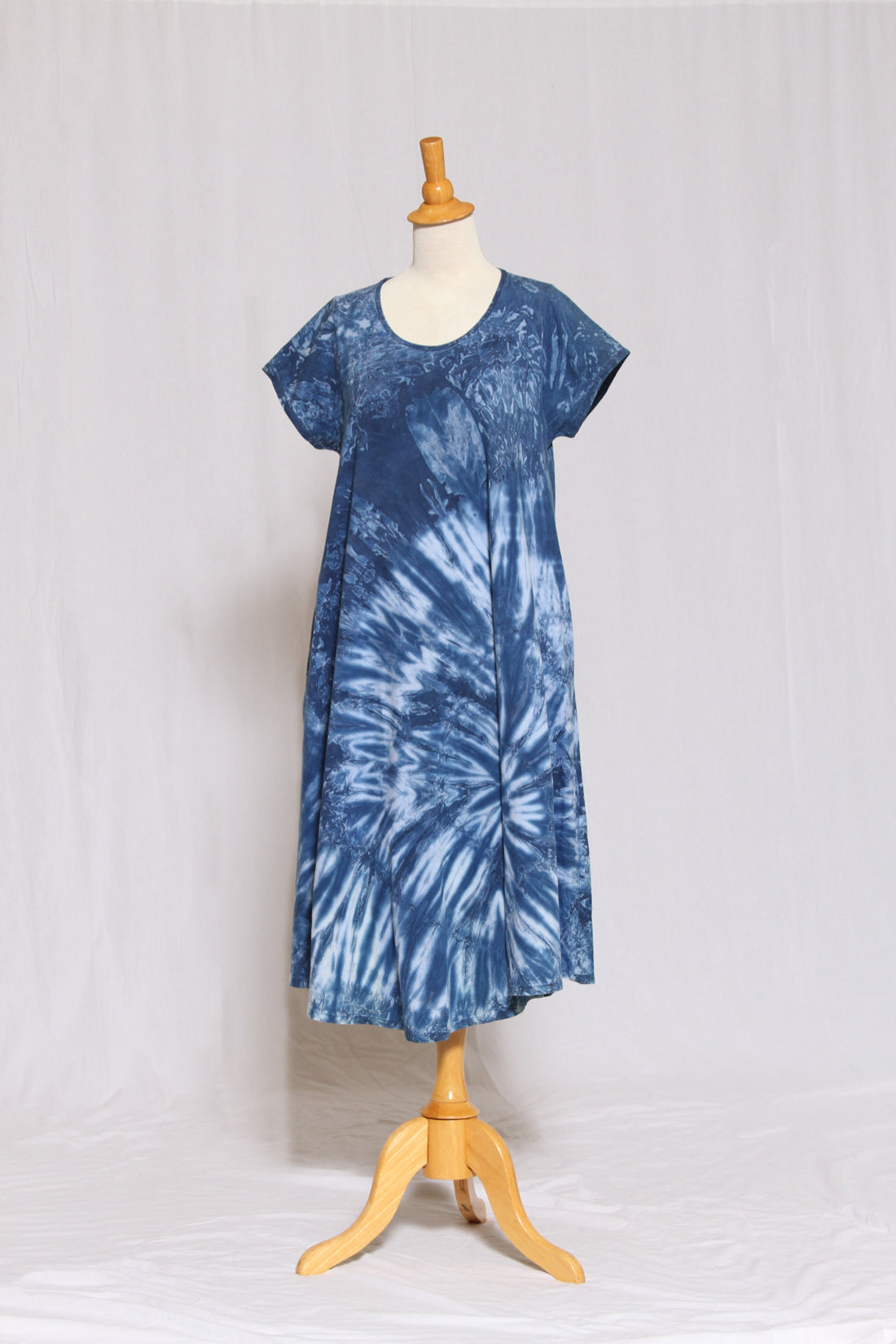 Blue Tie Dye Cap Sleeve Dress w/Pockets