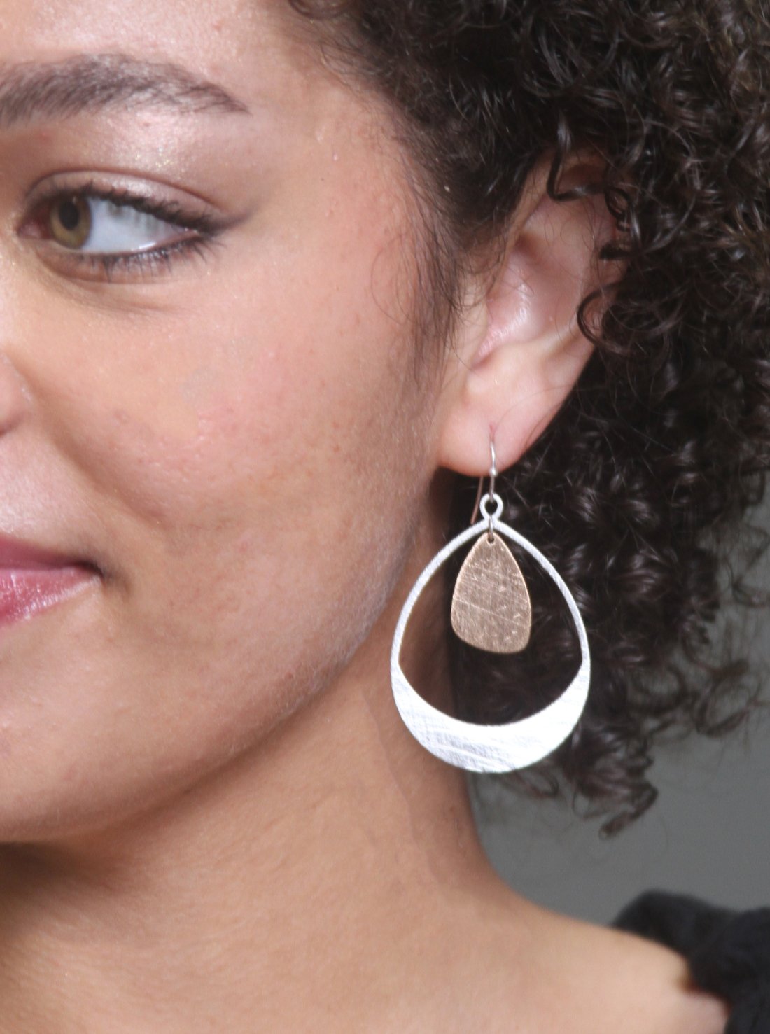 Brushed Silver Hoop Earrings with Gold Accent