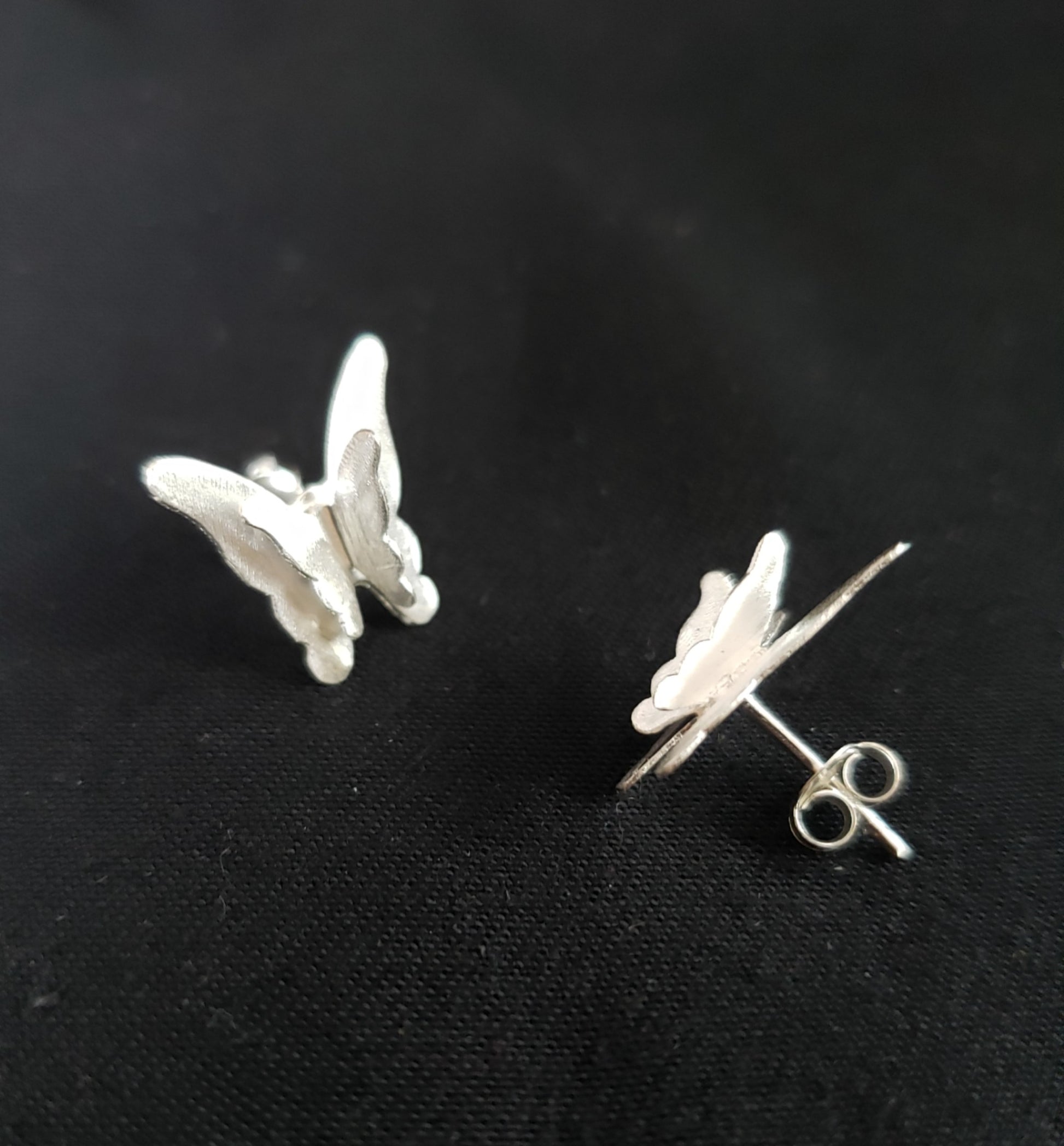 So much beautiful detail in these 3/4 inch butterfly earrings! The brushed matte finish is perfect. Made in Thailand.