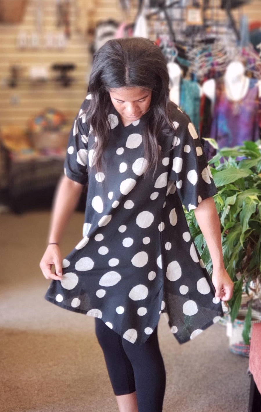 Oversized Cotton Tunic Dots Print