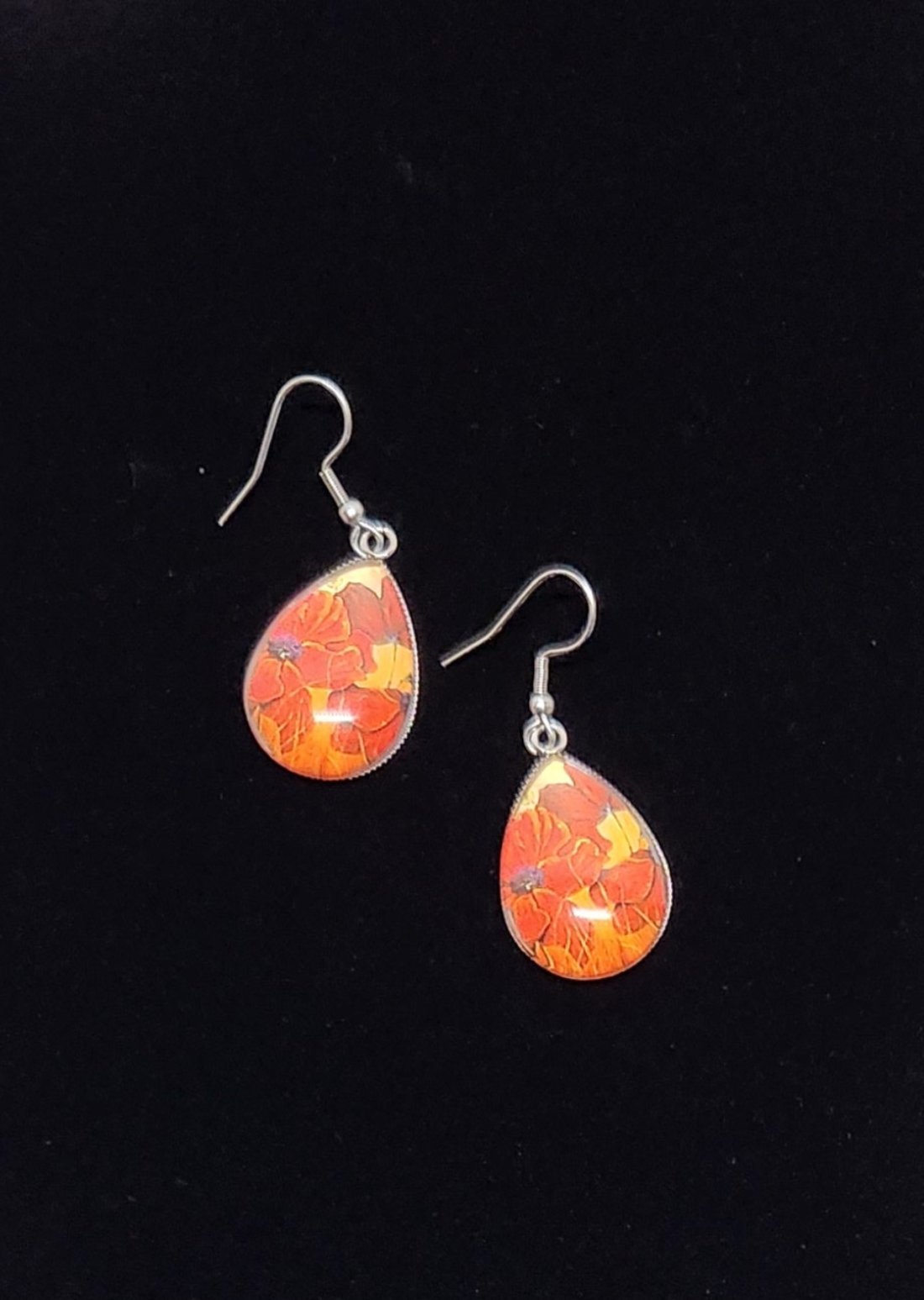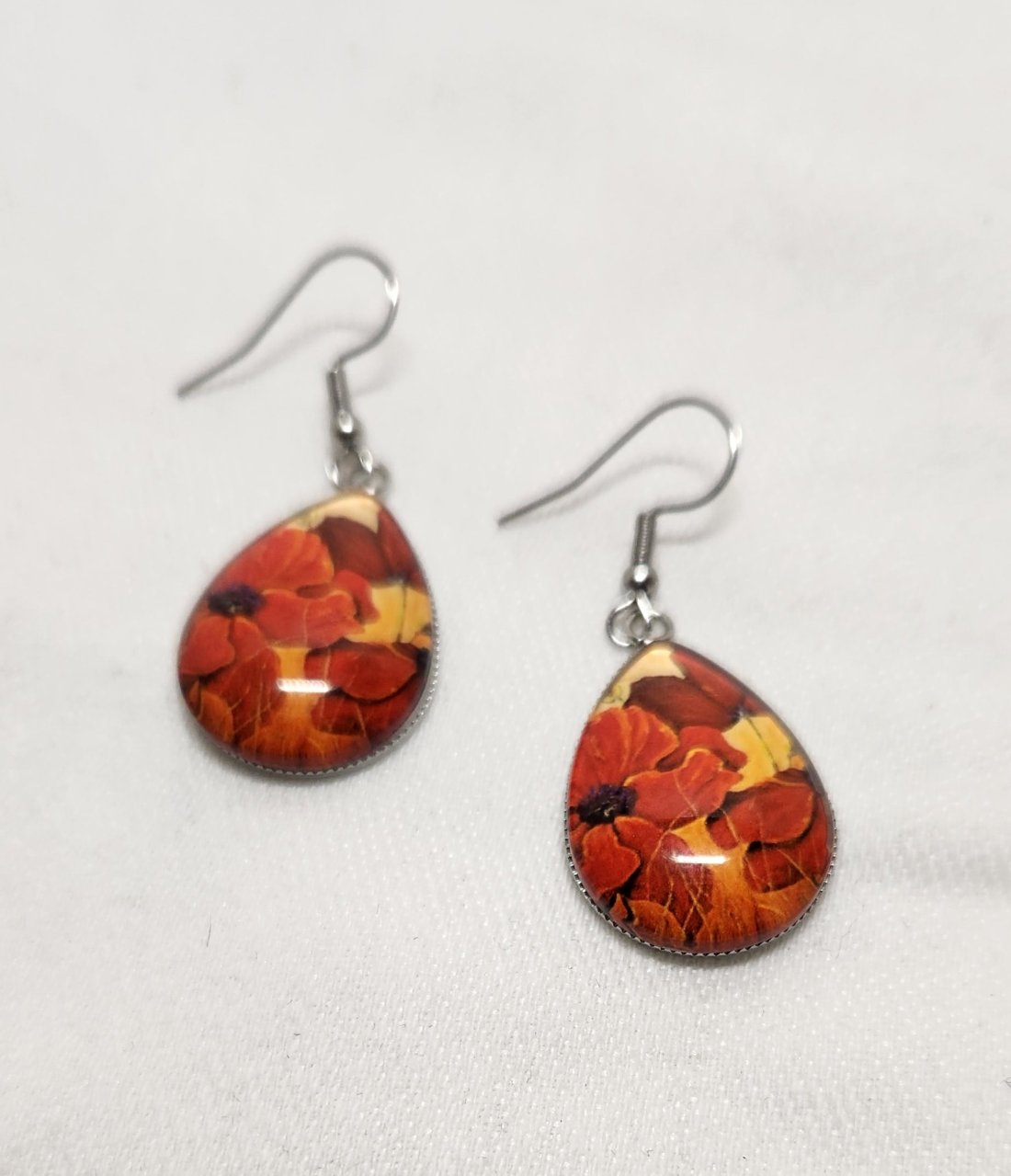 Make a bold statement with these **Red Poppy Teardrop Earrings**. Crafted for pierced ears, these earrings feature vibrant red poppy designs set against a radiant gold background, creating a stunning contrast that captures attention. The teardrop shape adds an elegant touch, while the floral motif brings a sense of natural beauty and charm. Perfect for adding a pop of color to your outfit, these earrings blend femininity and sophistication, making them an eye-catching accessory for any occasion.